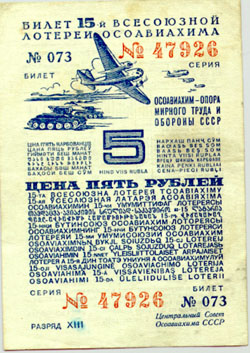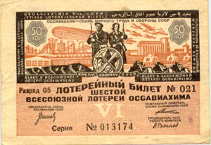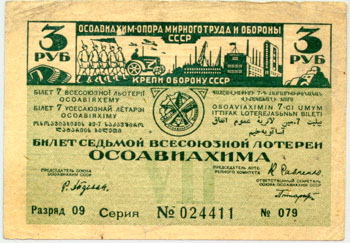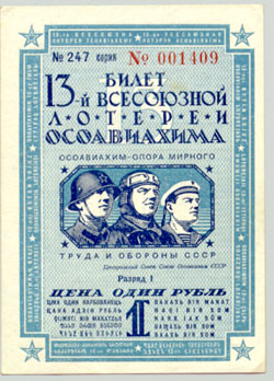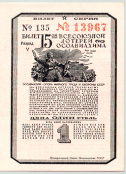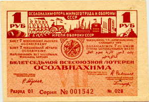 Russia/USSR- Help hungry 1.1 1922 500000 Rub. 2.1.1. 1923 2 Rubles 50 kopeks 2.1.2. 1923 5 Rubles 2.1.3 1923 10 Rubles Help children 3.1 1925 25 Kop 3.2 1926 50 Kop 3.3 1927 50 Kop 3.4 1929 50 Kop 3.5 1931 50 Kop 3.6 1932 1 Ruble Book lottery 5.1 1925 30 Kop OCOABIAXIM 6.1 1926 50 Kop 6.2 1927 50 Kop 6.3 1928 50 Kop 6.4. 1929 50 Kop 6.4a 1930 50 Kop 6.5.1 1930 50 Kop 6.5.2 1930 1 Ruble 6.6.1 1931 50 Kop 6.6.2 1931 1 Ruble 6.7. 1932 3 Rubles 6.8.1 1932 1 Ruble 6.8.2 1932 3 Rubles 6.9 1933 1 Ruble 6.10 1934 1 Ruble 6.11 1935 1 Ruble 6.12 1936 1 Ruble 6.13.1 1937 1 Ruble 6.13.2 1937 3 Rubles 6.14.1 1939 1 Ruble 6.14.2 1939 3 Rubles 6.14.3 1939 5 Rubles 6.15.1 1940 1 Ruble 6.15.2 1940 3 Rubles 6.15.3 1940 5 Rubles 6.16.1 1941 1 Ruble 6.16.2 1941 3 Rubles 6.16.3 1941 5 Rubles 6.16.4 1941 10 Rubles