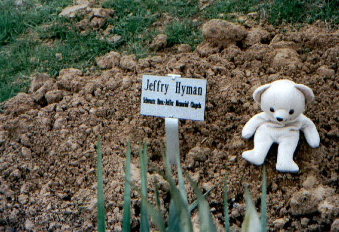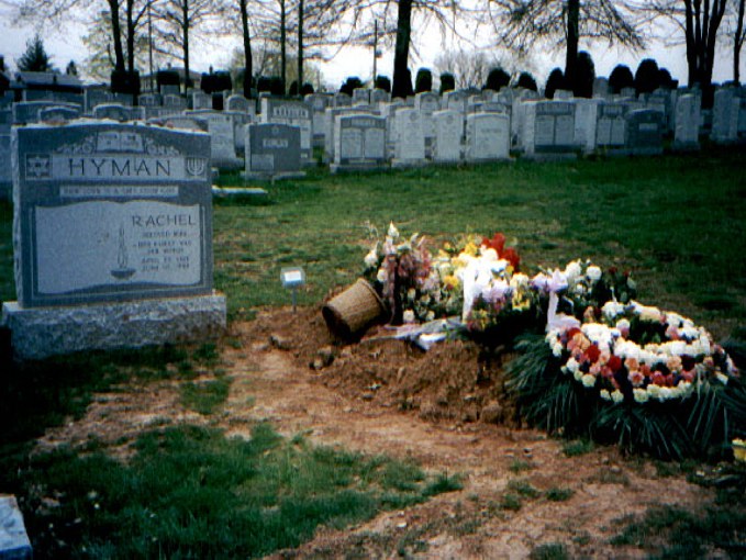 ![]() After you enter, go about 3 rows to your right and look for the "Hyman" Tombstone (about 10 - 20 feet at the most). Joey's grave is the second to the right of this tombstone. Here's a photo soon after burial.