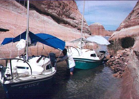 The "Hunky Dory" and Alan Motter's P-15 in Friendship Cove, Lake Powell. | ||