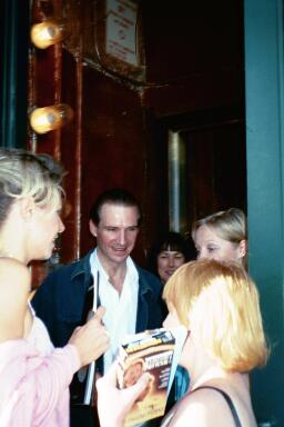Although he was most certainly tired, having just finished performing Coriolanus, Ralph Fiennes was kind enough to come out and sign autographs for those of us who'd been waiting. He even posed for a photo with the boy who played Coriolanus' son.
