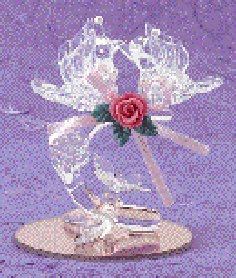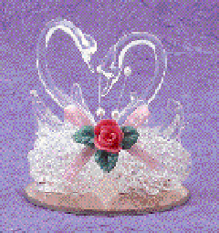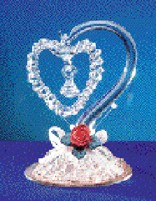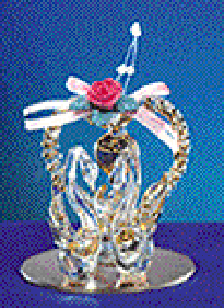 Two loving swans are the picture of grace and elegance in spun glass, surrounded by a heart-shaped wreath bedecked with a pink rose and "pearl" accents.