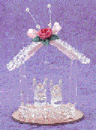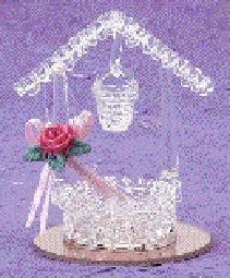 Lovebirds chirp their serenade to lovely spun glass flowers and vines.