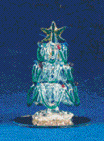 A unique Christmas creation of spun glass, this beautiful tree is bedecked with all the trimmings and topped by a bright yellow star.