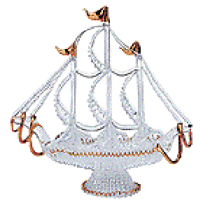 Sailing it's way gracefully into your home or office, this spun-glass schooner is the perfect memento for a boat enthusiast. It features gold trim on the flags, ship, and base.