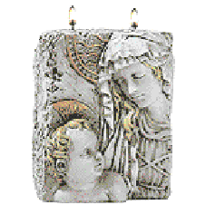 Cast to represent a stone sculpture, this Madonna and Child candle boasts dual wicks and soft tinting to enhance its detailed features.
