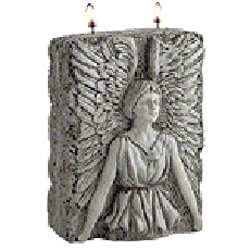 Spreading her sculpted wings, the angel represented on this stone-sculpted style candle with dual wicks is lightly tinted to bring out her classic details.