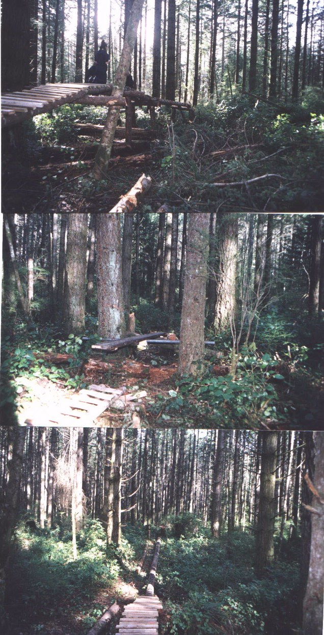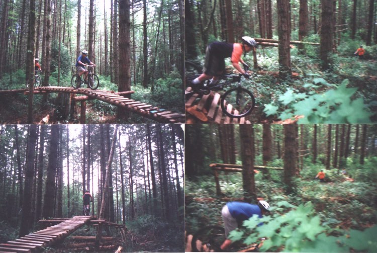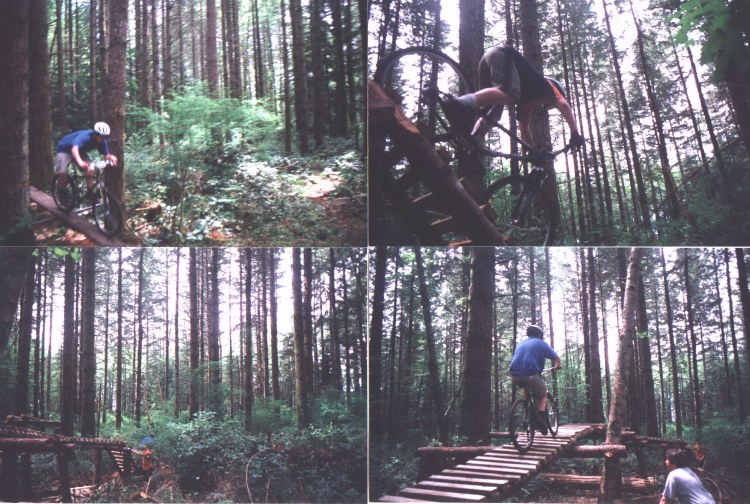 (Right) Brent and Danny doing the ladder section and blake riding down the trail in bottom right corner.
