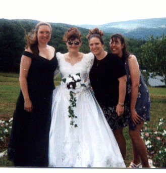 Kelly, Robyn, Me, and Amy at Robyn's wedding on July 11, 1998. She is now divorced. Robyn just had a baby boy on November 4, 1999. His name is Austin.