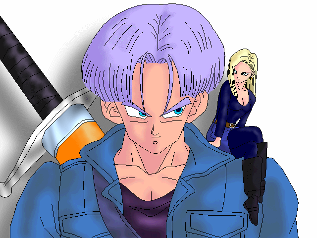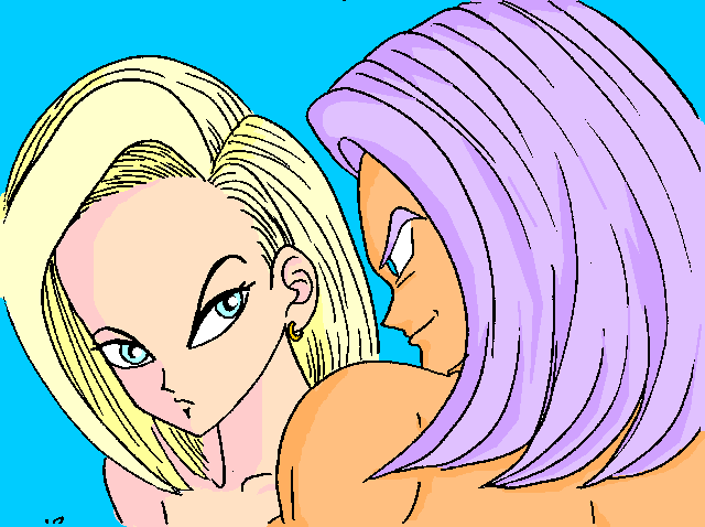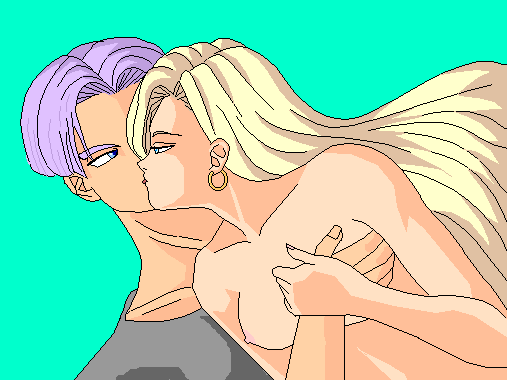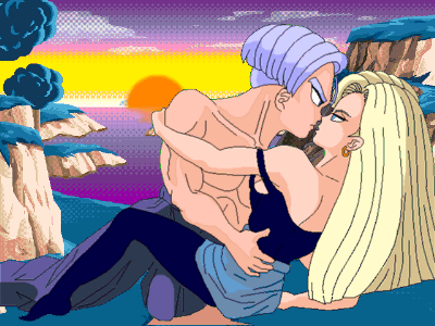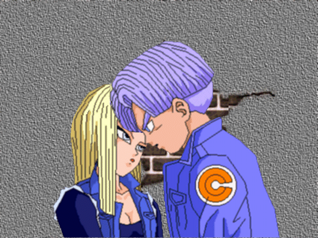 To make a long story short (too late!!!), what began as a one-shot PWP (Plot? What plot?) spawned a whole series of related stories. Naturally, any couple, no matter how strange or interesting, isn't enough to base a whole series on, so the Trunks/#18 romance became just another subplot in an expanding and varied storyline. Nowadays the DBSZ stories have something for just about everyone...but the couple featured here remains my personal favorite.![]()