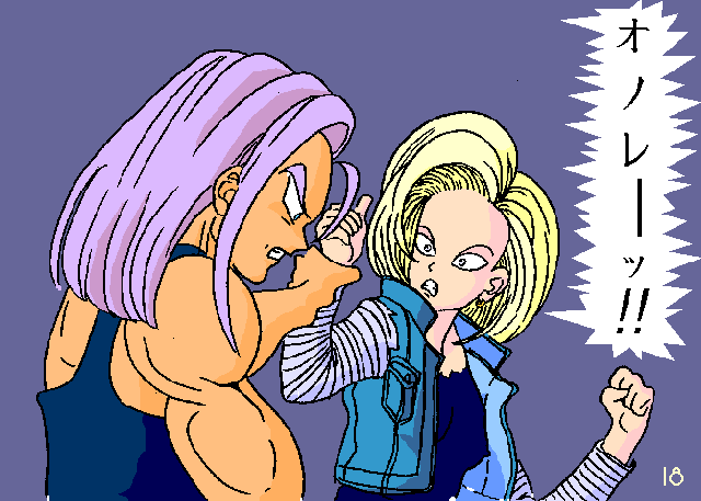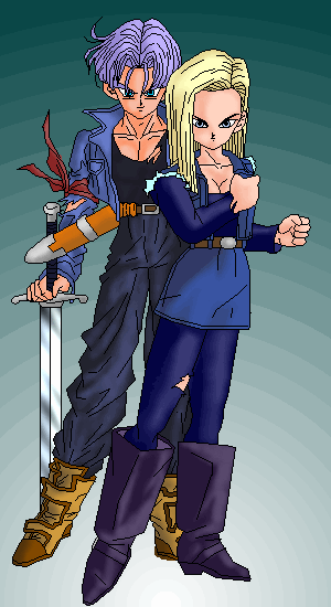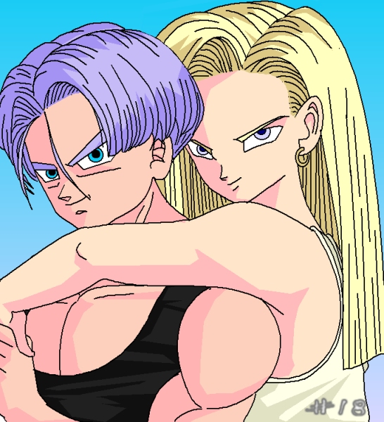 Why Trunks and #18? Well, Trunks seemed lonely, neither I nor my writing partner, Mirai Bulma, think he's gay, and neither one of us wanted to create a new female to throw at him (it's been done. Repeatedly). So we came up with the idea of resurrecting Juuhachi-gou with total amnesia, effectively giving her a clean slate.