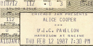Had the worst seat in the house for this show. I was directly behind a pole. The show was good what little I could see of it. In Chicago if a show is "soldout" what you can do is, go to ticket master about two hours before the show starts and there will be tickets right on the floor ready to be bought. I think that the radio stations let them sell the ones they had reserved when it gets that close to show time. I told my friends this and they got seats on the floor only ten rows away an hour before the show. Megadeth opened, I really started to hate Megadeth. Cooper got killed about six times during the show, hung, decapitated, mauled, and injected with poison.