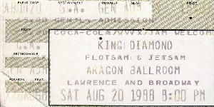 Not much happened here, the hall was really full for a Diamond show, and he did a cool bit with mirrors. As for Flotsam & Jetsam their only claim to fame is that their bassest left to join Metallica.