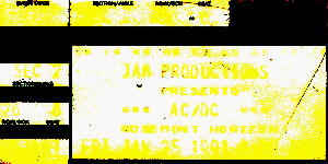 Another really good show. When they played "Money Talks" there was these flash pots hooked to the ceiling that exploded and dropped AC/DC money all over the concert floor. The bills had Angus's picture on them. They also had a huge bell in the middle of the ceiling that they rang during "Hells Bells". In the middle of the floor, under the bell, there was a platform that the security guards ushered Angus to in the middle of his solo. He got up on the thing which raised him about 25 feet from the floor, and he did that Curly floor thing. This was way cool. I can't remember who opened for them.