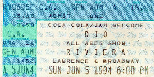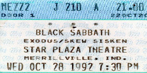 This was really hip! It was when Ronnie James Dio had come back to the band for one album. I think they broke up during this tour. They never made it to CA. and all the west coast shows got cancelled. The worst thing is that I'm a big Dio fan, and for the whole show I was waiting for "Rainbow in the Dark" and it just never came. It was also sorta hard to hear him singing "War Pigs" it's just such an Ozzy song. The fact that they opened with "Mob Rules" sorta made the whole thing worth the trip. As for Exodus it was like, are these guys still around? Wow! I thought they died years ago.