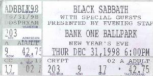 This was a great show, it was billed as "New Years Evil". My friend in Arizona wanted to go to this show, but all of his friends wussed out on him. Then he remembered that I was coming into town. He asked if I would go and bought the tickets. The concert was huge, five bands... Soul Fly (remains of Sepultura), Slayer, Megadeth (again), Pantera, and finally Black Sabbath with Ozzy singing! I was unimpressed with Soul Fly & Megadeth. Slayer was awesome as always, but the set was too short. Pantera really rocked and afterword I bought all of their CD's. The topper of the show was Ozzy dropping his pants and mooning the crowd. After the show they set off a huge fireworks display. The arena was really cool except that it was No Smoking, can you imagine a thousand headbangers and a No Smoking rule? It wasn't long before the crowd had started several bond fires.