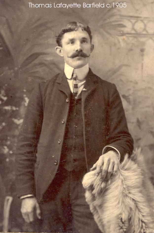 17. Sarah Lou Theus b. 13-Feb-1889 in Taylor Co., m. married John Hanney Barfield (b. 16-Apr-1882 d. 9-Dec-1956) on 20-Jan-1907 in Taylor Co., married by