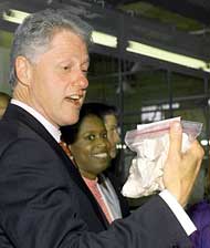 Associated Press Photo Clinton receives complimentary sample of some "good stuff." |