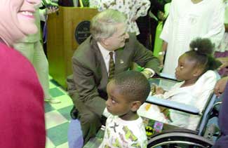 Gov. Barnes assaulted at Medical Center Gov. Roy Barnes was assaulted at Macon's Medical Center of Central Georgia when he inadvertently placed his hand on a little girl's knee. Five-year-old Dukeshia Bopper said, "I don't like strangers touching me, he got in my space and I punched his nose." Gov. Barnes apologized for alarming the girl and said he didn't intend to press charges on the assault. |