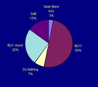 information, BUY before the boat is missed. 9. Seek part ownership in Hooters or Neon Cowboy franchises---this is the "buy what you know--or wish you knew" approach. 8. Start a baseball, basketball and football pool at work. 7. Play Virtual Vegas with real money; bring laptop PC to monthly meeting. 6. Convert Investment club to Monopoly Club; place $25 each in bank, divide all board prices by ten and roll the dice. Establish rules on Free Parking UP FRONT. 5. Invest in "plastics" for Hooters staff; accept no less than 15% of tips in excess of previous 2 year's average. Closely monitor measurements and seek full disclosure (of the money!). 4. Convert Investment club to Putt-Putt club. Play 18 holes for $1 a hole every month. 3. Design a Stock Selection and Buy/Sell/Stand decision dart board (see below). Just think of all the time to be saved in research and discussion! 2. Buy $25 worth of lottery tickets per month. Diversify between Cash3, Fantasy5, Lotto and Power Ball. Just go with your hunch on half, quick picks on the other.