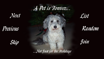 ![]() Webring site is owned by Sandee's Cyber Animals. Previous 5 Sites| Previous | Next Next 5 Sites | Random | List | Join |