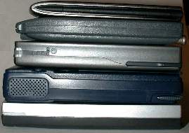 (From top to bottom Palm V, Palm III, Casio E11, HP Jornada 420 and the Compaq