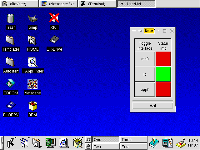 This is a desktop with Netscape iconifyed and the ppp0 control panel