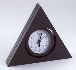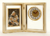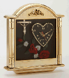 heart-shaped quartz clock. Goldtone plastic. Uses