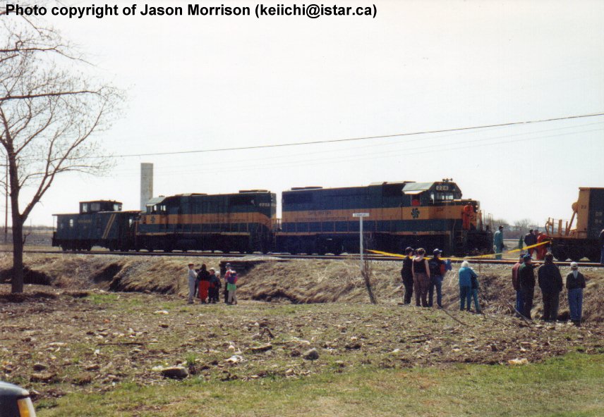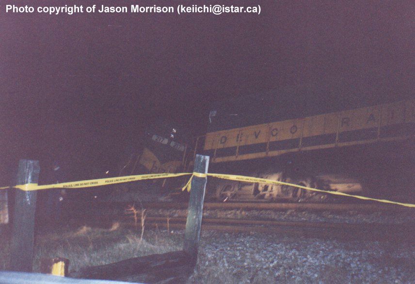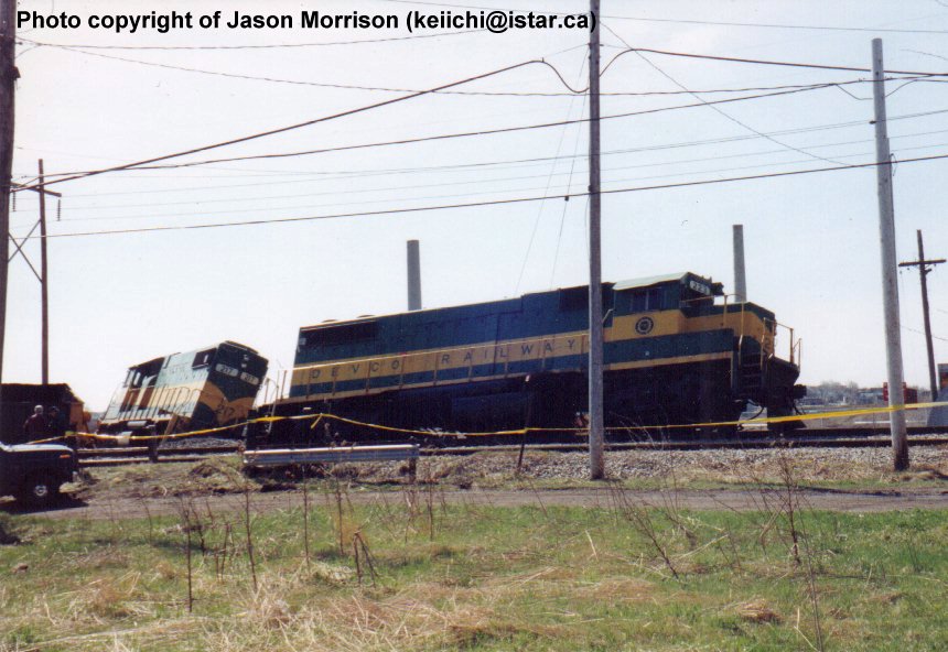 we looked out the window the site was amazing. Two Devco GP38-2s derailed