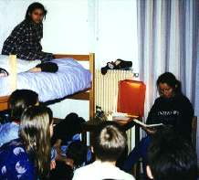 Als iedereen doodmoe was van het skiën en het vele wandelen ging elk klas naar de kamer van hun juf of meester voor de laatste gebeurtenis van de dag: de avondwijding.