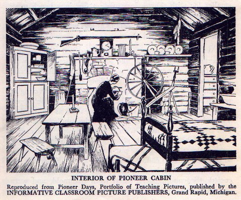 In those days women worked at the side of their men. They cut down trees and built a log cabin.They sawed the logs all the same length, 16 feet. Then they hewed two sides of the log flat with iron wedges and a pole ax. when they got enough logs, they built their cabin one story and a half. Then they got yellow clay which they wet to soften it. They put the wet clay in the cracks inside and outside.