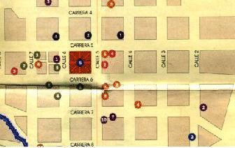 Plano del Centro de la ciudad: Podemos ubicar en negro: 1. Catedral 2. Santuario del Humilladero 7. Asilo de Ancianos 10. Iglesia de Santo Domingo. En rojo: 1. Alcaldía 2.Cámara de Comercio. 3. Casona U. de Pamplona 4. Palacio de Justicia 5. Palacio Arzobispal 6. TELECOM |