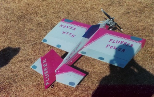 This is my new Flubber-Hoover Plane. It was built to flat spin like no other plane I have had. It will flat spin in an upright and inverted position and will stay flat all the way down. It has a 41 inch span and uses an OS- 91 four stroke with pump.