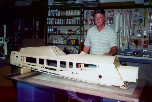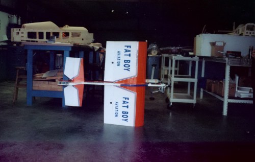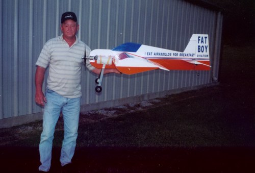 Is this plane going to fly? I have not flown it yet and thought I would get your thoughts before I try it out. What makes it unique is its wing, take a close look at the wing tip. The wingspan is 41 inches, chord is 21 inches, and is 6 inches thick at the spars. I call this plane “Fat Boy” because of the really thick wing. The picture doesn't show the true size of the wing, it is huge. It is a wing with a basement. The plane weighs 9 lbs and has an OS .91 FS for its power. More than likely it will require a 1.20 or larger engine if it does fly. I have been building fun fly planes with thicker and thicker wings so I decided to go all the way with a 6-inch thick wing. I wanted this design to be a really good slow aerobatic plane. The fuse is 12 inches high at the cockpit area and has a ½ inch aluminum channel at the bottom to keep it straight with no warps. The fuse is about 53 inches long. I have Fat Boy balanced at about 23% so I think it is going to be tail heavy for its first flight, but I didn't want to add any more weight. If the .91 gets it off the ground I am sure it will be a marginal performance.