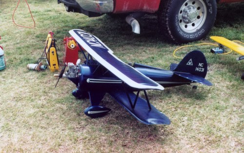 Loren has brought us two new planes to our field, the AT-6 and the Waco biplane. The AT-6 has a 32cc blower engine and weighs 15 lbs. with an 82-inch wingspan. The Waco has a 1.50 Saito four stroke engine and a 72-inch wingspan. I have seen both of these planes fly and all I can say is that I wish they were both mine. Loren can pilot these planes to make it look easy.
