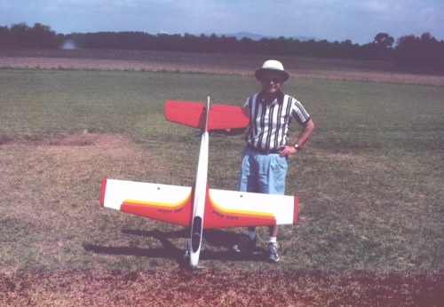 Here is Dr. Larry Barksdale with another one of his beautiful airplanes. This is a Bridi “Dirty Birdy” all balsa pattern plane with an os .91 engine. This is not an ARF kit; it is built up balsa and finished all the way by Larry. Larry has been in the R/C hobby for more years than I can count and has built some of the most beautiful planes you can find at any flying field. Larry is mainly interested in pattern flying and has become very proficient in this area. Larry has been a member of TRCC for many years and is a good supporter of the club. Larry always takes the time to build his planes the way they should be built. His detail work is excellent and his graphics really stand out when his planes are in the air. Larry has the kind of planes that I would be proud to call my own. Keep up the good work Larry.