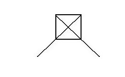I determined the ailerons must be cross-coupled and on the same side of the wing instead of going through the wing from top to bottom. The run of the control rod was so long that I decided to use bell cranks about midway of the wing. It would require four bell cranks with two on each side of the wing mounted back to back. It worked out best to gang the right rear and the left front aileron together on top of the wing and the left rear and the right front together on the bottom of the wing. When completed everything again worked smooth and I was ready to proceed. It is strange that the elevons hookup turned out to be an x connection. From day one of the Stamp plane I have related to the kites I would fly when I was a small boy. We made them from notebook paper and used two sage straws crossed over in the center of the paper to make an x configuration. It looked like this: