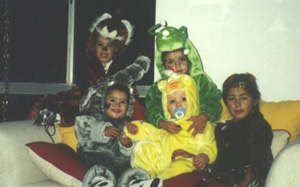 todos estabamos disfrazados de animalitos... Fuidmos de casa en casa y nos salian
