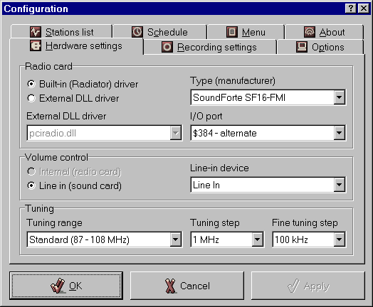 přidána podpora pro Zoltrix RadioPlus 108, adaptéry připojované na sériový port GemTek RadioMan, GemTek Wizard Radio, Justy Radion-maru, Unit Rajikoma a kartu AverMedia TV98 (BT878) (AverMedia TV98 funguje pouze na Windows 9x)