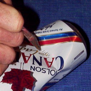Crush the can with your thumb to make