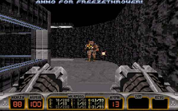 The Final SayThe BadLet's face it, compared to games of today, Duke Nukem's graphics suck! And the sound isn't much better. That great midi quality that we gave up on over 5 years ago during the dawn of the MP3. And the aliens aren't that much better. They aren't really that difficult (until you get to the absolute end boss, then it's like hunting a T-Rex in Carnivores) As for network play, there's better. Hard core gamers already get off on Unreal, Quake and Tribes, why muddy up the pool. The GoodIt's Duke Nukem, baby! He's the original! Why would you turn your back on Duke! The Last WordPassing up on this game is like passing up on a great meal, or a fantastic car. You know that Duke is reliable. For God's sake, there's people out there that still swear by the game. Unlike Carnivores, if you can, go out of your way to pick up this game. It is a classic and one that will never die! The CostThis game was a keeper. I've found it and lost it more times than I care to remember. The last copy I had, I gave to my buddy Pearce. I figured I'd get another copy of it somewhere. Besides, it wasn't something I would die if I didn't get again. Well, wouldn't you know, PC Gamer Magazine was offering the full first three versions of Duke including the one that made him famous. All this and Quake and Half-Life Mods. My cost: $9.99 Canadian. Killer Screen Shots |