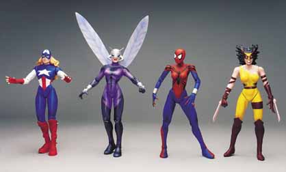 The MC2 action figure assortment includes (left to right)American Dream, Stinger, Spider-Girl and Wild Thing.