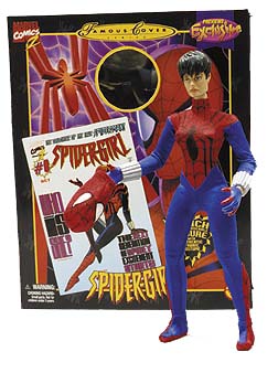 Characters from Marvel Comics MC2 line are going to take action figure form for the first time this year when Previews releases it's exclusive MC2 assortment as part of their ongoing Marvel History program. These figures, manufactured by Toy Biz, will be offered exclusively to the direct market in the next issue Previews. The MC2 comics feature a look into the possible future of the Marvel Universe, featuring fresh takes on existing characters and introducing some of the offspring of present day Marvel Superheroes