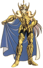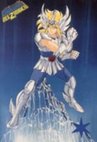 En el Santuario nadie se da cuenta que cae un meteoro dorado en la casa de Capricornio; es Shiryu con la armadura del Caballero Dorado de Capricornio. Después de cumplir su misión, la armadura de Capricornio se arma frente al cuerpo inerte de Shiryu. Mientras tanto, Seiya, Hyoga y Shun llegan a la casa de Acuario, donde Camus los está esperando. Hyoga le dice a Seiya y a Shun que sigan a la casa de Piscis, mientras él pelea con su maestro. Seiya y Shun obedecen y salen de la casa de Acuario. Camus ataca a Hyoga con su poder Ejecución Aurora hasta dejarlo casi inconsciente. Camus forma otro bloque de hielo y encierra a Hyoga en él, pero esta vez Hyoga despierta su Séptimo Sentido y rompe el bloque desde dentro. Muy herido, Hyoga intenta atacar a Camus con la Ejecución Aurora; Camus le dice que no puede copiar su poder y también se prepara para hacer la Ejecución Aurora. Ambos Caballeros disparan sus poderes y toda la casa de Acuario queda congelada. Camus felicita a Hyoga por haber podido despertar su Séptimo Sentido y por lograr atacarlo con su misma técnica. Después de esto cae muerto por congelación. Hyoga le da las gracias a su maestro por haberle obligado a despertar su Séptimo Sentido y se despide de él; al igual que Camus, Hyoga cae muerto por congelación. Seiya y Shun siguen a la casa de Piscis y ven caer un copo de nieve, dándose cuenta que es la forma de Hyoga de despedirse. |