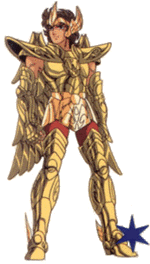 Por otro lado, Saori sigue en su predicamento cuando aparece la armadura dorada de Sagitario. Con la presencia de la armadura dorada de Sagitario, todas las armaduras doradas del Santuario brillan con intensidad al estar las doce juntas. Después de esto, la armadura dorada de Sagitario desaparece. Seiya, Shiryu y Shun llegan a la casa de Sagitario y no ven a nadie. De pronto, un Caballero empieza a caminar hacia ellos. Este Caballero es Hyoga que llega de la casa de Escorpio. En ese momento, la armadura dorada de Sagitario aparece frente a ellos y apunta su flecha al corazón de Seiya. Seiya se mueve, pero la flecha sigue apuntando a su cuerpo, hasta que la armadura lanza la flecha, pero pega en la pared atrás de Seiya. La flecha de Sagitario abre una caverna por la cual entran Seiya, Shiryu, Hyoga y Shun, ahora recuperado. Dentro de la caverna se enfrentan a varios problemas y al final sólo Seiya llega al final. De pronto, todos están de vuelta en la casa de Sagitario y se dan cuenta que todos los problemas que pasaron fueron una prueba. La flecha de Sagitario abre una parte donde Aioros escribió su testamento para los Caballeros que protegerían a Atena: "Amigos, les encomiendo la vida de Atena". Con una nueva esperanza, Seiya y sus amigos se dirigen a la casa de Capricornio. |