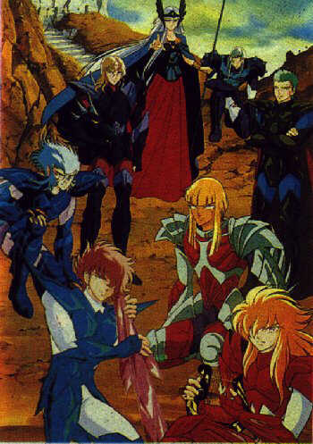 Asgard, al norte de Europa, es la tierra de los dioses nórdicos. Esta tierra se encuentra siempre congelada y la mayoría de sus habitantes nunca ha visto o disfrutado la luz del sol. Pero este sacrificio lo hacen para evitar que los hielos eternos se derritan y destruyan al mundo. Estas tierras son los dominios del dios Odín... y en ellas reina la noble Hilda. Hilda es la representante de Odín en las heladas tierras de Asgard y se encarga de rezar al dios Odín para que el hielo de los polos no se derrita. Cuando Hilda estaba rezando, una voz de lo más profundo del océano congelado le habló. Le dijo sobre los cambios que se estaban dando en el Santuario y que era hora de que la gente de Asgard saliera del eterno frío. Para ayudarle en su misión, Hilda debería de despertar a los Dioses Guerreros y derrotar a Atena y sus Caballeros del Zodiaco. Hilda no puede hacerlo y le pregunta el nombre de la persona que le habla, como respuesta, el mar la levanta y le coloca a Hilda el Anillo de los Nibelungos para dominar su mente. Nota: El misterioso Anillo dorado de los Nibelungos tiene la facultad de hacer que la persona que lo usa sea esclava de la persona que se lo puso. Este poderosos anillo no lo puede quitar nadie; aunque cuenta la leyenda que la espada Valmur del dios Odín tiene el suficiente poder para quitar y destruir el Anillo de los Nibelungos. Con el Anillo de los Nibelungos en su mano y con el poder de su estrella guardiana Polaris, Hilda invoca a los Dioses Guerreros representados por las siete estrellas de la constelación de la Osa Mayor. Sigfrid, el legendario guerrero invencible y su armadura Dube de Alfa; Hagen, el guerrero del frío y el calor y su armadura Merak de Beta; Toll, el guerrero de los martillos y su armadura Fegda de Gama; Alberig, el guerrero de la sabiduría y su armadura Megures de Delta; Fenril, el guerrero solitario y su armadura Arioto de Epsilon; Syd, el guerrero de colmillos y garras blancas y su armadura Mizard de Zeta; y por último Mime, el guerrero más mortal y su armadura Benetonash de Eta. |
