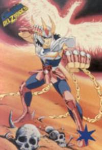 Sin poder ver, Shiryu decide volver con su maestro a China. En el cuartel de los Caballeros, Ikki tiene diferencias con los demás Caballeros de Bronce y decide mejor andar sólo. En eso, Damian, Caballero de Plata del Cuervo y criador de cuervos, manda a sus mascotas para que secuestren a Saori. Seiya los persigue y salva a Saori, pero queda muy dañado de su mano izquierda y se encuentra en una parte muy peligrosa. Rodeado por Damian y por Shaina, Seiya decide lanzarse al vacío, pero no engaña a Shaina. Al día siguiente, Shaina baja a buscar a Seiya y a la mujer que protegía (Saori). Abajo, Saori ve que Seiya está desmayado por la caída. Shaina intenta asustar a Saori, pero Saori usa su cosmo energía y Shaina la reconoce como la energía de Atena. Damian llega e intenta atacar a Saori, pero Hyoga y Shun llegan para evitarlo. Con Damian muerto y Atena del lado de los Caballeros de Bronce, Shaina decide huir. Después de eso, aparecen dos Caballeros de Plata frente a Saori, Seiya, Hyoga y Shun. Estos Caballeros son Dante de Cerbero y Capella de Auriga, que vienen a matar a Seiya. Dante utiliza sus cadenas y lanza a Hyoga y a Shun a un abismo, pero gracias a la cadena de Andrómeda no se lastiman. El Caballero del Fénix aparece y vence a Capella con su Golpe Fantasma. Shun, por su parte, acaba con Dante. |