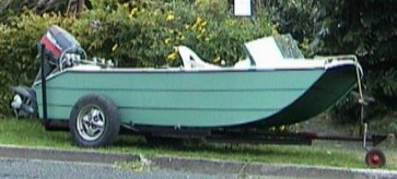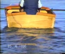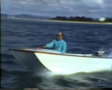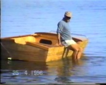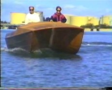 Hickman Sled.. The first attempt was a 3 metre plus ply hull with much consternation on the lines and effects of water displacement. Finally EP1 was launched and first tried with oars and stability tests the results were staggering.. A 4 HP Outboard was fitted and performance uplifting, so a bigger motor was found and fitted, a 9 HP with the staggering performance of 18 MPH with one up . |