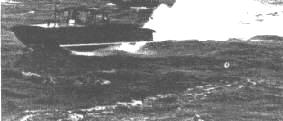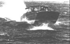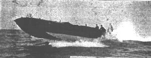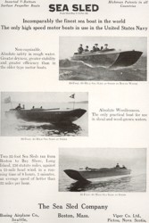 A copy from THE RUDDER P.21 Year Unknown SEA SLEDS Pictures of the Sea Sleds in action. The Sea Sled is built from a patented design and incorporates an inverted V- bottom. The type should not be confused with boats of the scow type which have flat bottoms Note the roughness of the water |