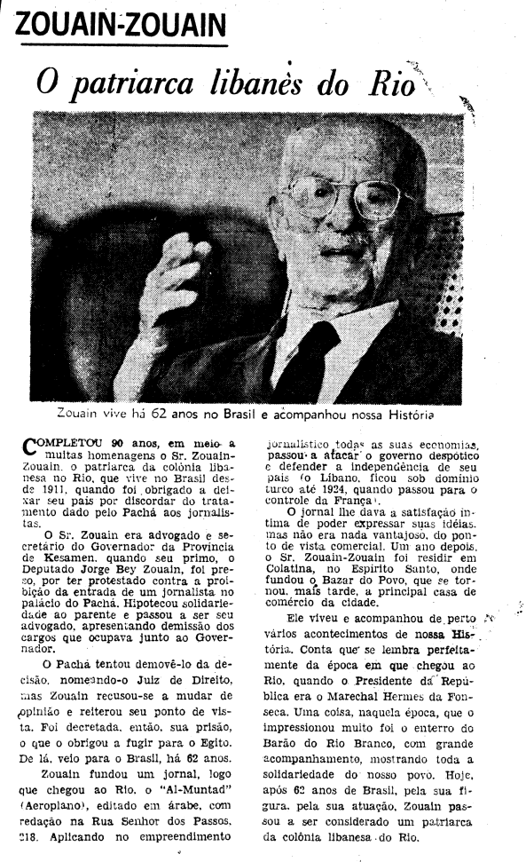 Zouain Zouain who immigrated to Brazil about 1901 , left behind him with four brothers, about 500 children,grand & great grand children.
