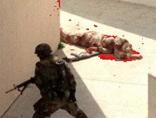 Bill aimed at the 'soldier' with the Uzi. "Ambush.. keep your head down."